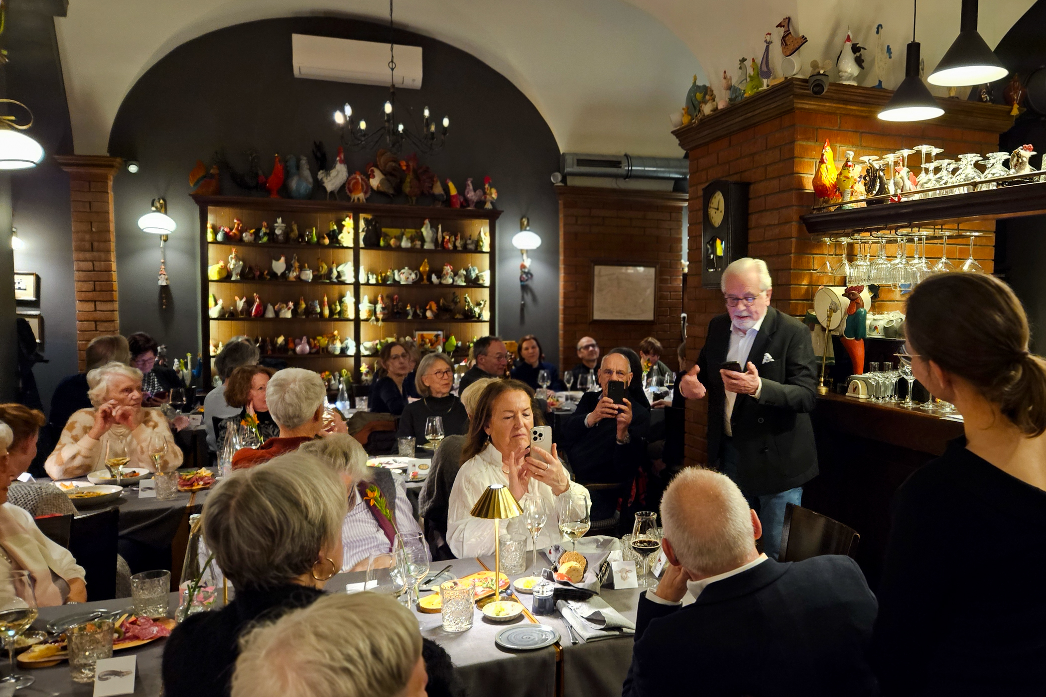 Kleine Siesta und schnell ist der kurze Fußmarsch zum Restaurant Pietergalis bewältigt. Edel, gemütlich, freundlich, köstlich. Schnell wird es erfüllt vom fröhlichen Geplauder der Ballettfreunde, die das gesamte Restaurant geflutet haben. Man hat viel zu erzählen. Jeder berichtete über seine Erlebnisse und Eindrücke und das Geräuschniveau der durcheinander laufenden Gespräche ist entsprechend. Also ein rundum kommunikativ und kulinarisch gelungener Abend. Kompliment an Eva und Oliver zu dieser ausgezeichneten Restaurant- und Speisenauswahl.