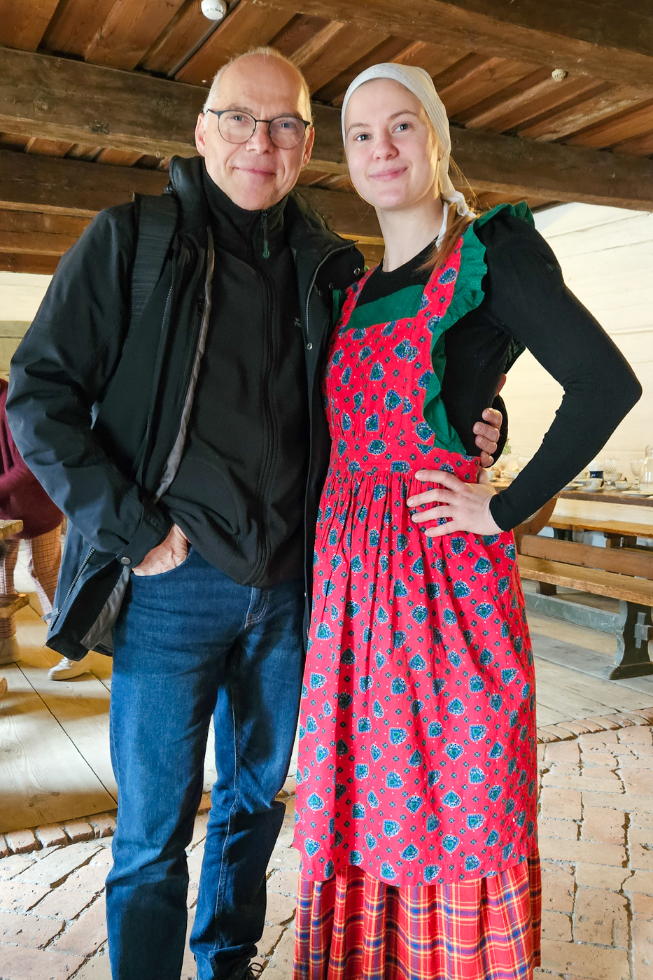 Ein Graubärtiger in feiner Tracht sitzt stolz lächelnd in seiner guten Stube am großen Esstisch und begrüßt stumm die Besucher. Ein verwunschenes, moosbedecktes Häuschen am zugefrorenen Teich unterhalb einer Windmühle. Am kleinen Hügel gegenüber eine Holzkirche mit wunderschöner Deckenbemalung. Engelscharen fliegen fröhlich über uns. Altar, Predigtkanzel, prachtvoll geschnitzt.