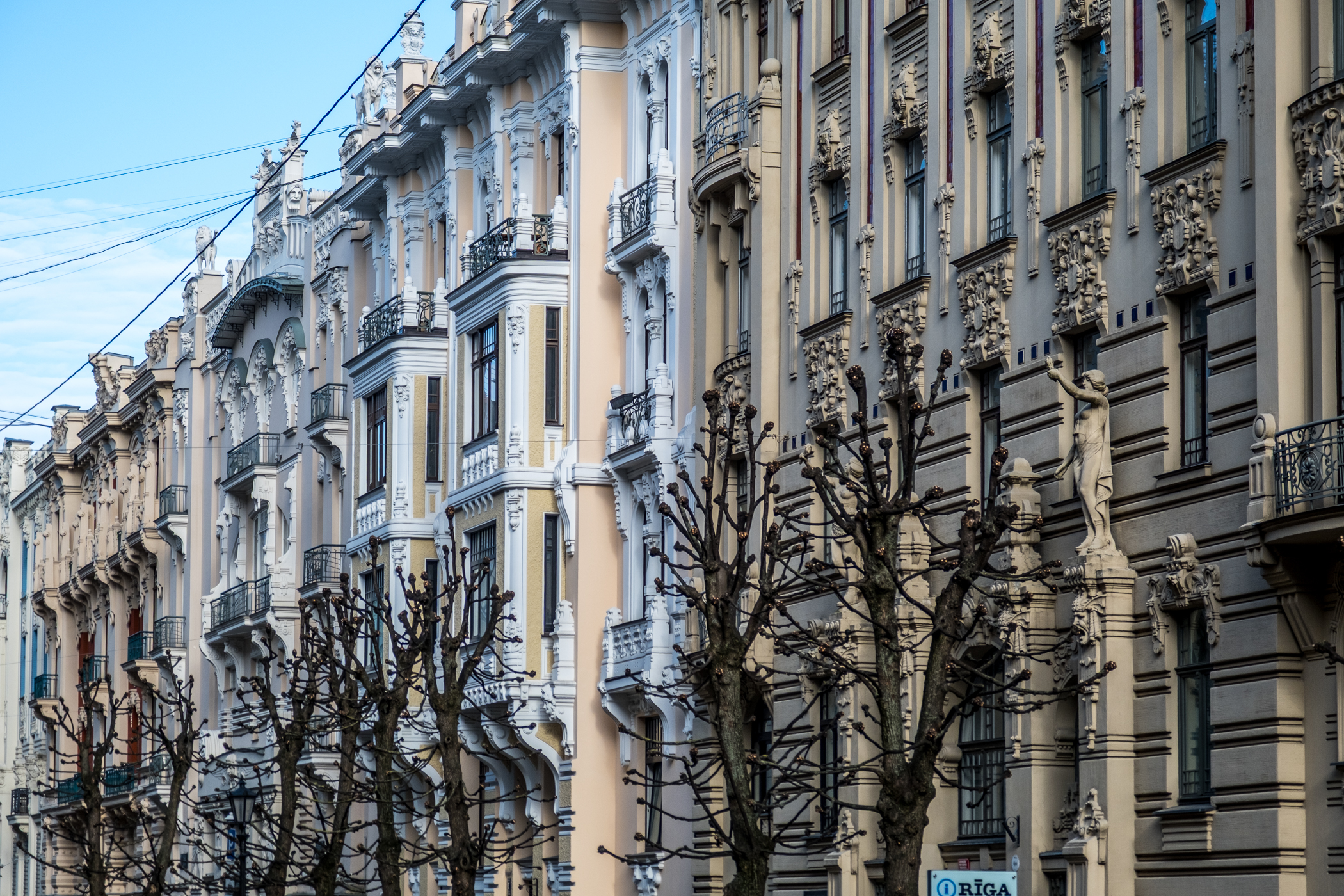 Riga ist mit rund 800 Gebäuden das Zentrum des Jugendstils und Weltkulturerbe. Mit dem Bus an der Duna entlang. Am gegenüberliegenden Ufer sieht man die extravagante Nationalbibliothek. Blick auf die Skyline von Riga und Gruppenfoto. Die Markthallen und das russische Viertel (nachts nicht zu empfehlen) huschen vorbei. Die Bebauung ändert sich, russische Zeit, Gründerzeit, Moderne, Jugendstil und Holzhäuser wechseln sich ab. So schlagen wir den Bogen zurück zum Hotel.