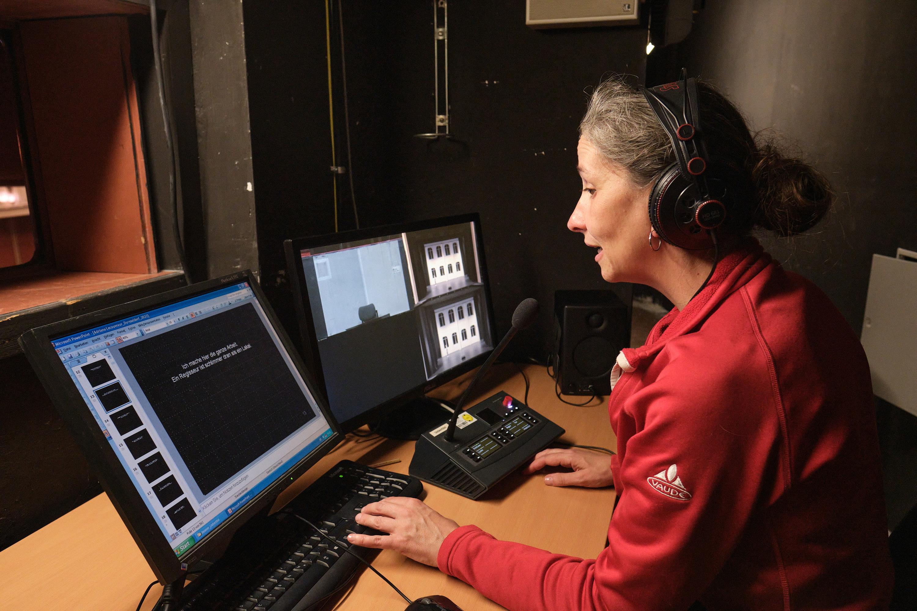 Während der Vorführung wird die Audiodeskription live von einer Deskriptorin eingelesen, die aus ihrer Sprecherkabine das Geschehen auf der Bühne verfolgen kann. Der Ton wird an die blinden oder sehbehinderten Menschen über eine Handy-App auf die (eigenen oder zur Verfügung gestellten) Kopfhörer in den Opernsaal übertragen.