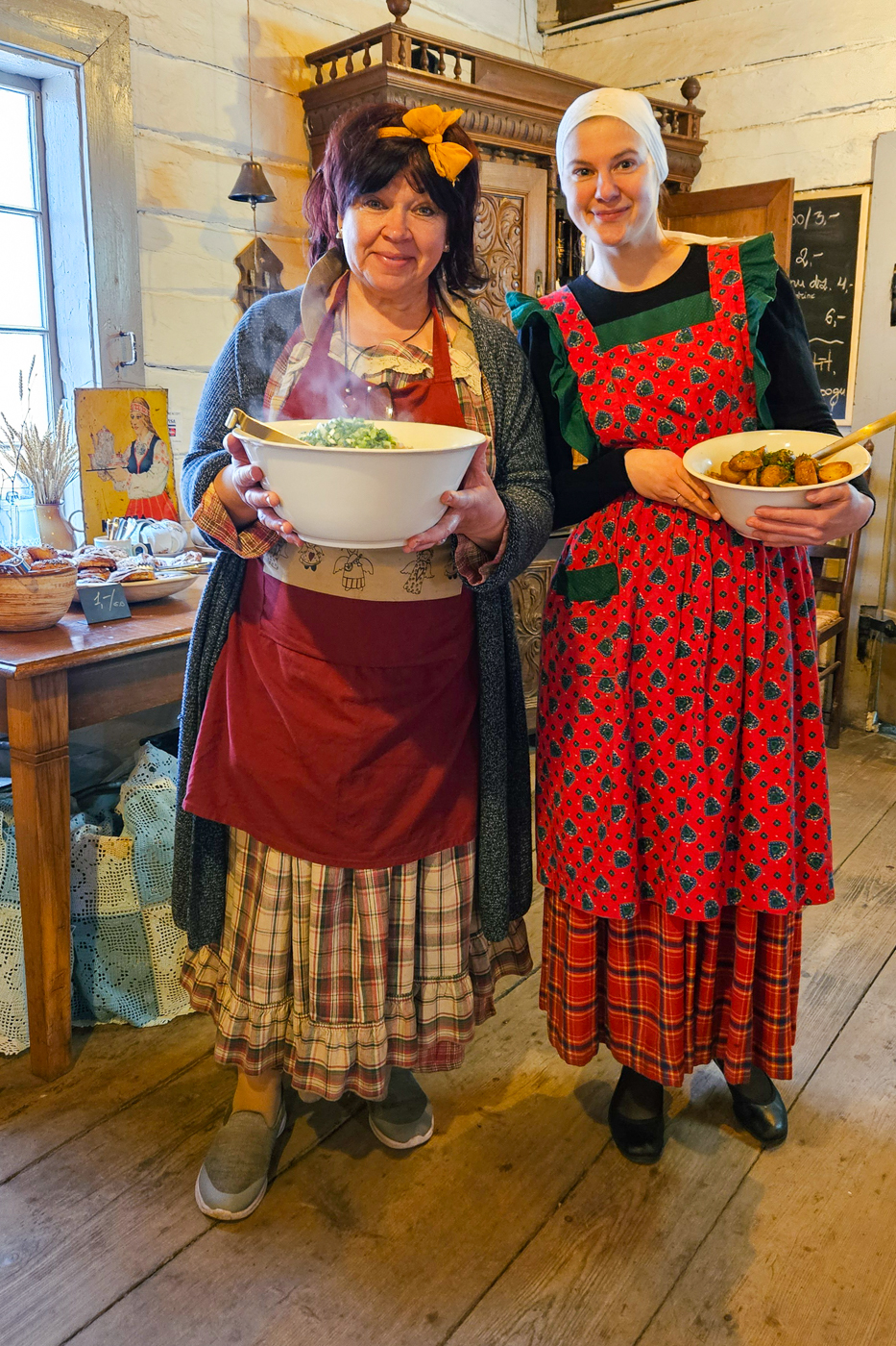 Ein Graubärtiger in feiner Tracht sitzt stolz lächelnd in seiner guten Stube am großen Esstisch und begrüßt stumm die Besucher. Ein verwunschenes, moosbedecktes Häuschen am zugefrorenen Teich unterhalb einer Windmühle. Am kleinen Hügel gegenüber eine Holzkirche mit wunderschöner Deckenbemalung. Engelscharen fliegen fröhlich über uns. Altar, Predigtkanzel, prachtvoll geschnitzt.