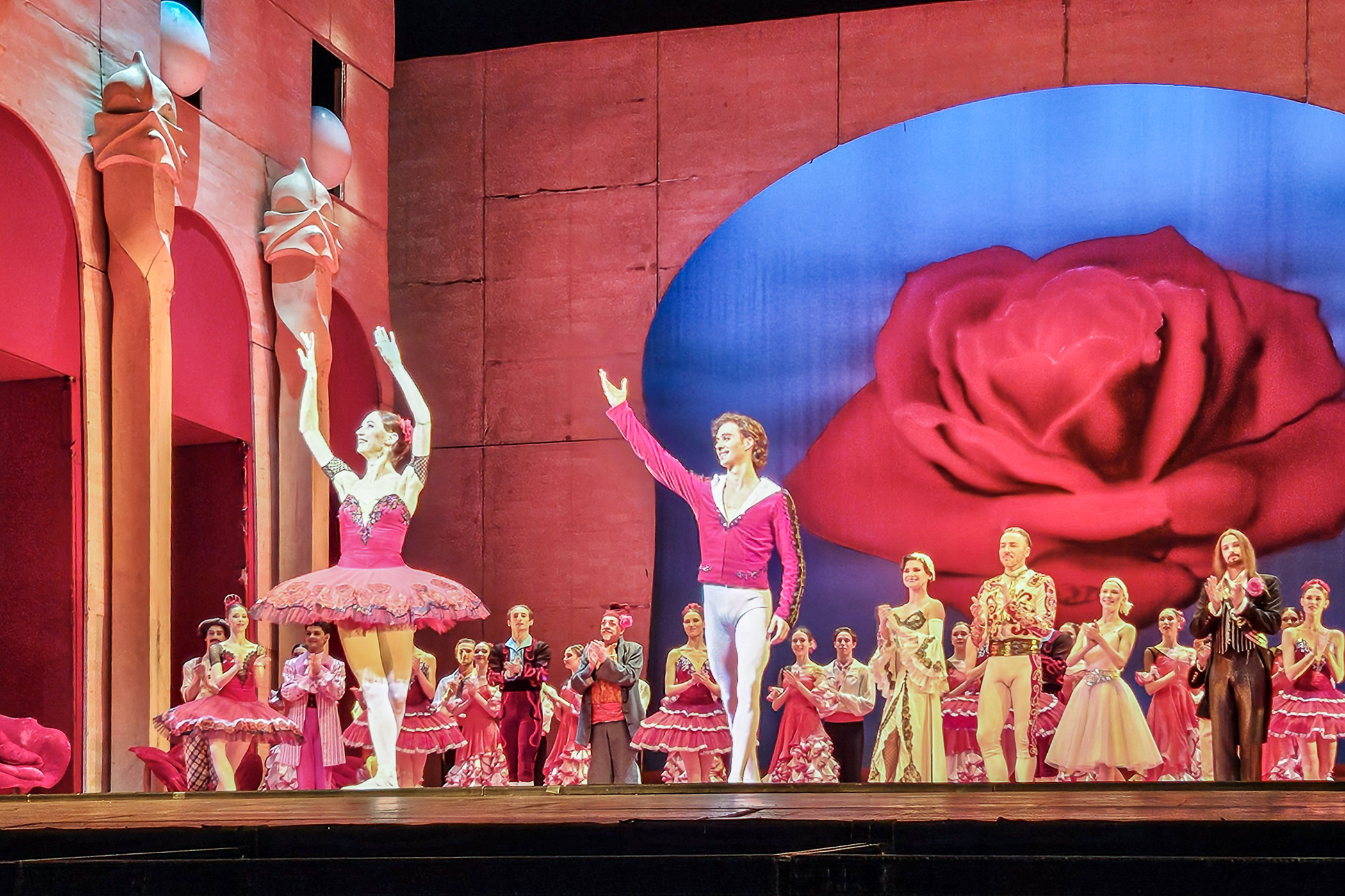 Mittagsschlaf, Wecker, Aufhübschen und in gespannter Erwartung durch die mit Abendbummlern gefüllten, beleuchteten Straßen zum nahen Opernhaus. Grüne Seidentapeten, goldgrünverzierter Stuck, samtrotbezogene Einzelbestuhlung und ein rotsamtener Bühnenvorhang mit breitem goldenen Rahmen verströmen den Duft einer vergangenen goldenen Epoche. Ballettvorstellung: Don Quixote, Musik des österreichisch-ungarischen Komponisten Minkus und Choreografie von Petitpas. Vorhang auf, wir sind im Spanien vergangener Zeiten und Don Quixote, ein den Ritterromanen Verfallener und aus der Zeit Gefallener, macht sich auf, die Hand seiner Angebeteten zu gewinnen.