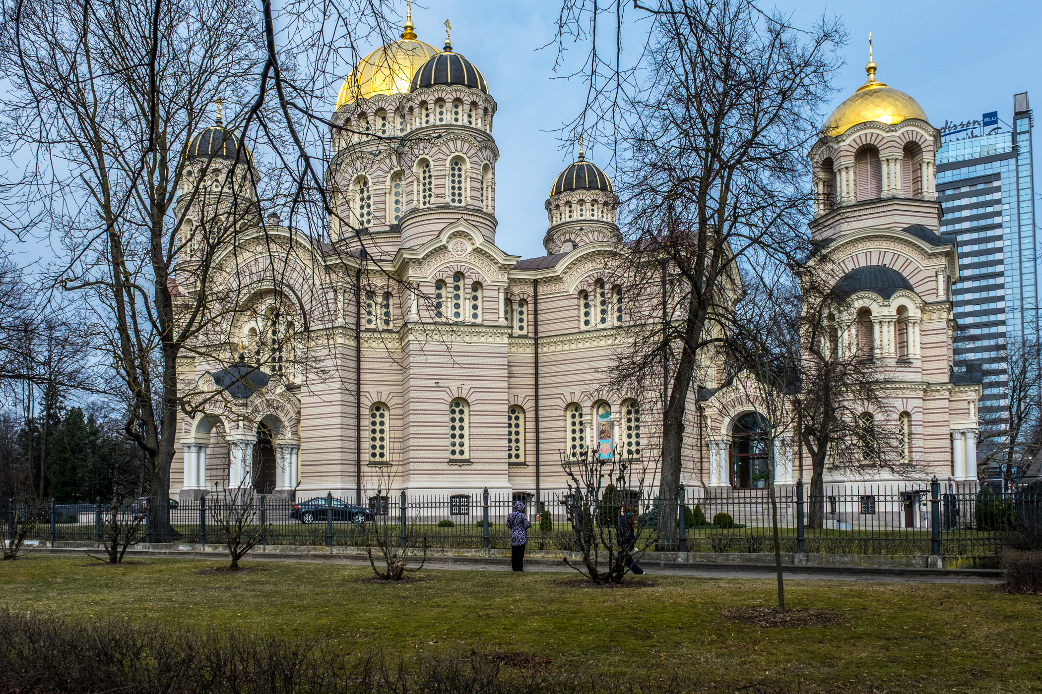 Für einige geht´s gleich weiter. Sie steigen an der goldgeschmückten griechisch-orthodoxen Kirche aus, für andere und uns gings vorbei an der Freiheitsstatue, die die 3 Teile Lettlands symbolisiert, zur Endstation Hotel.