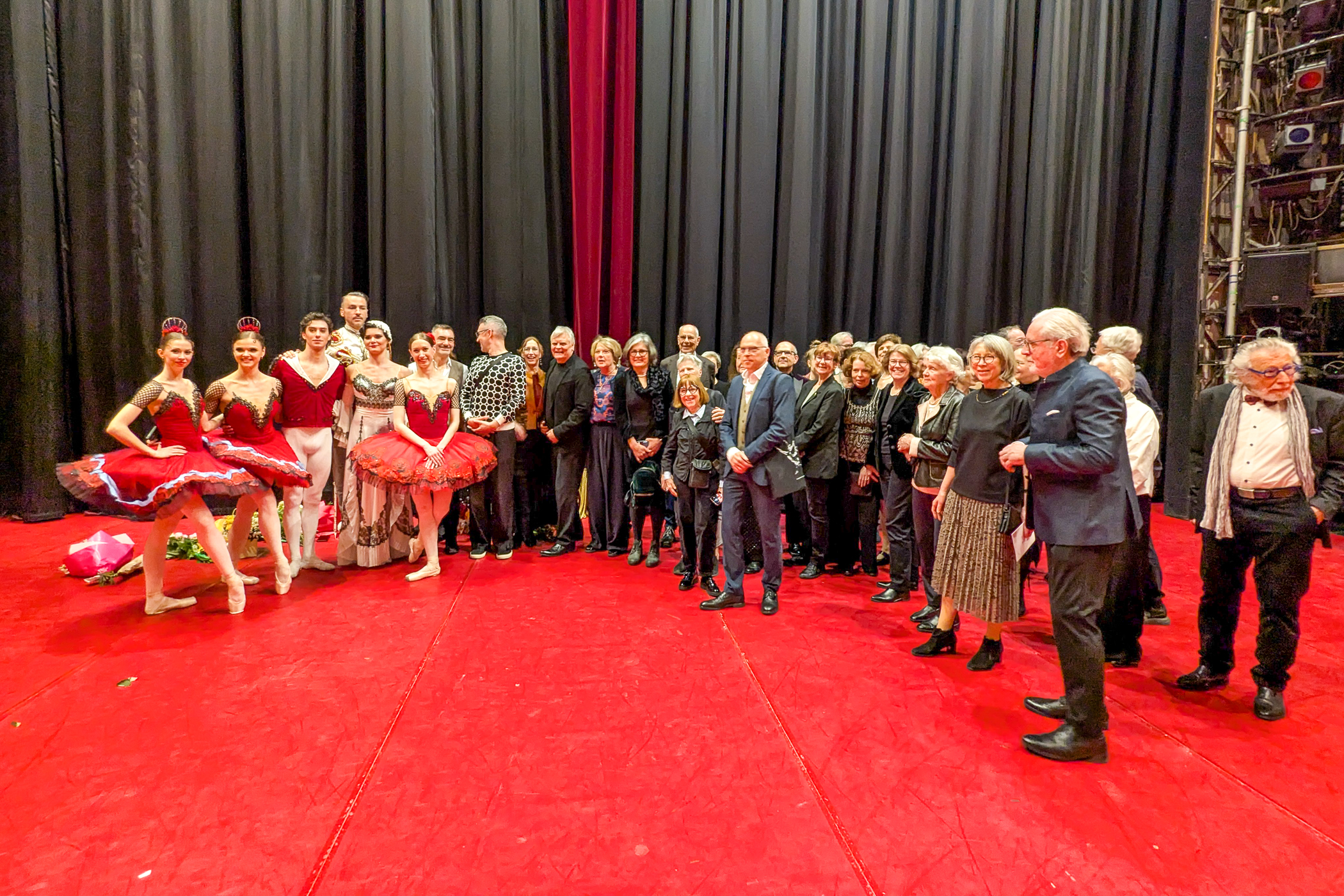 Es war erfrischend und schön, tat dem Gemüt gut und wir zwei gingen beschwingt zur Bühne. Empfang durch den Ballettdirektor, Tänzerinnen und Tänzer hautnah, Bühnenluft. Das Ballett Russische Schule. Aivars Leimanis, der künstlerische Direktor des National Ballet, hat sein 50-jähriges Jubiläum. Hat 17 Jahre als Tänzer und 33 Jahre als Ballettdirektor gewirkt. Unsere Hochachtung und Bravo.