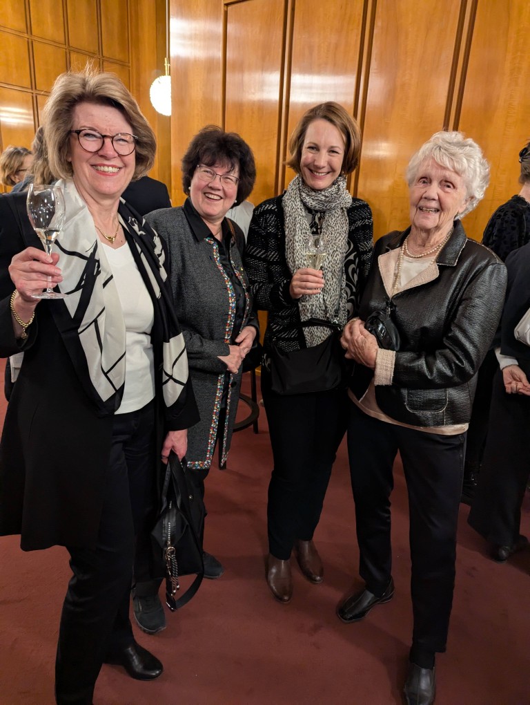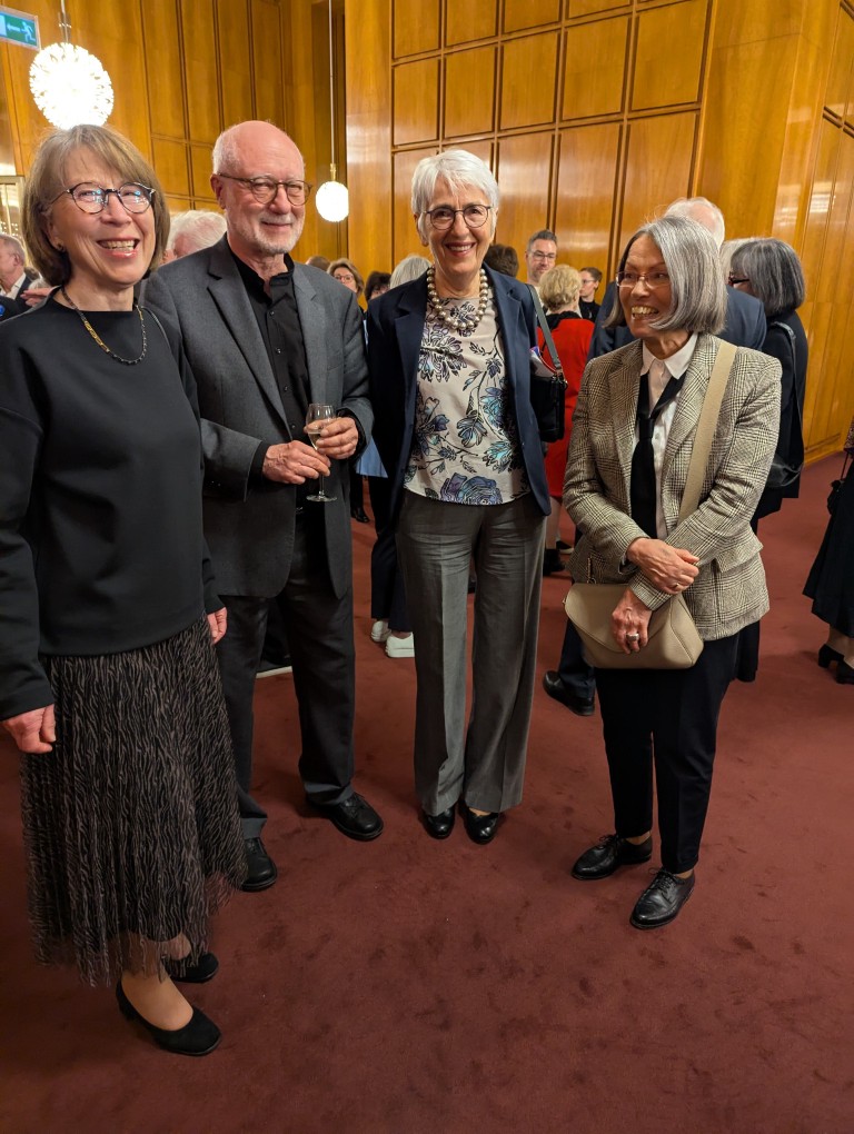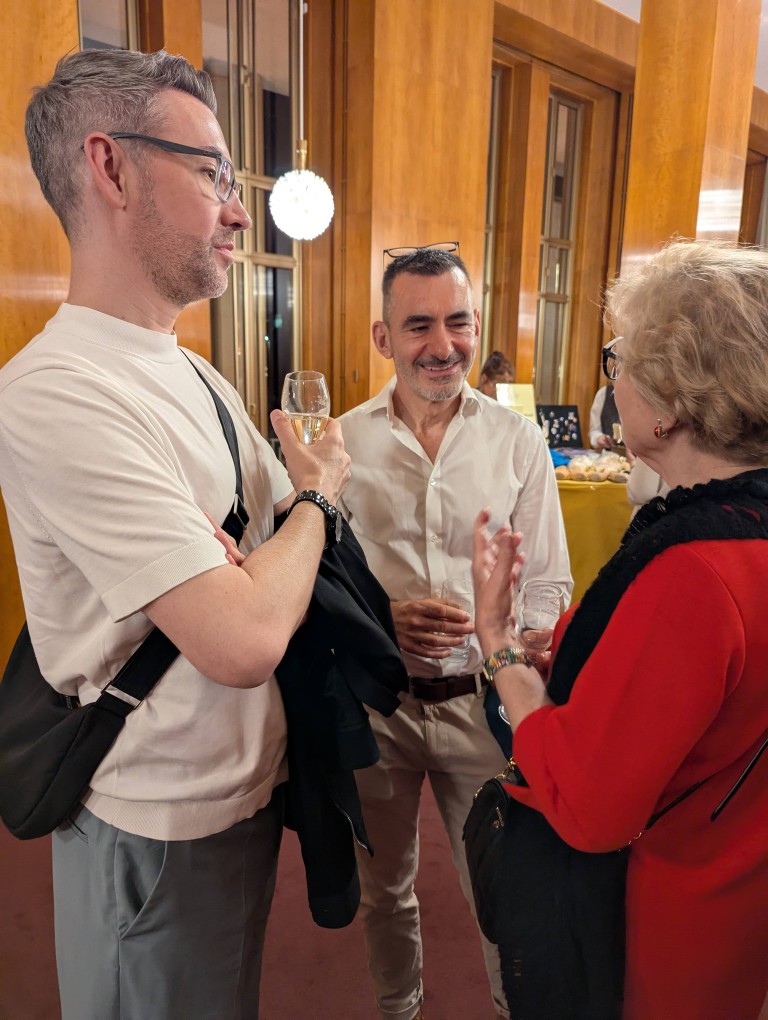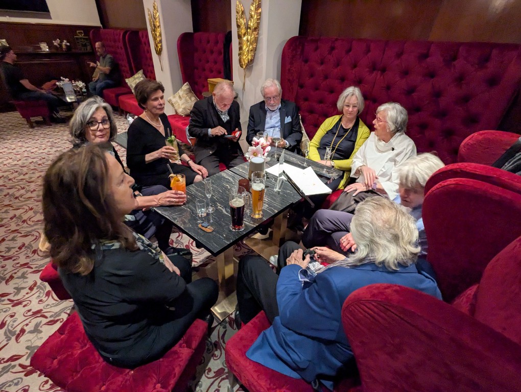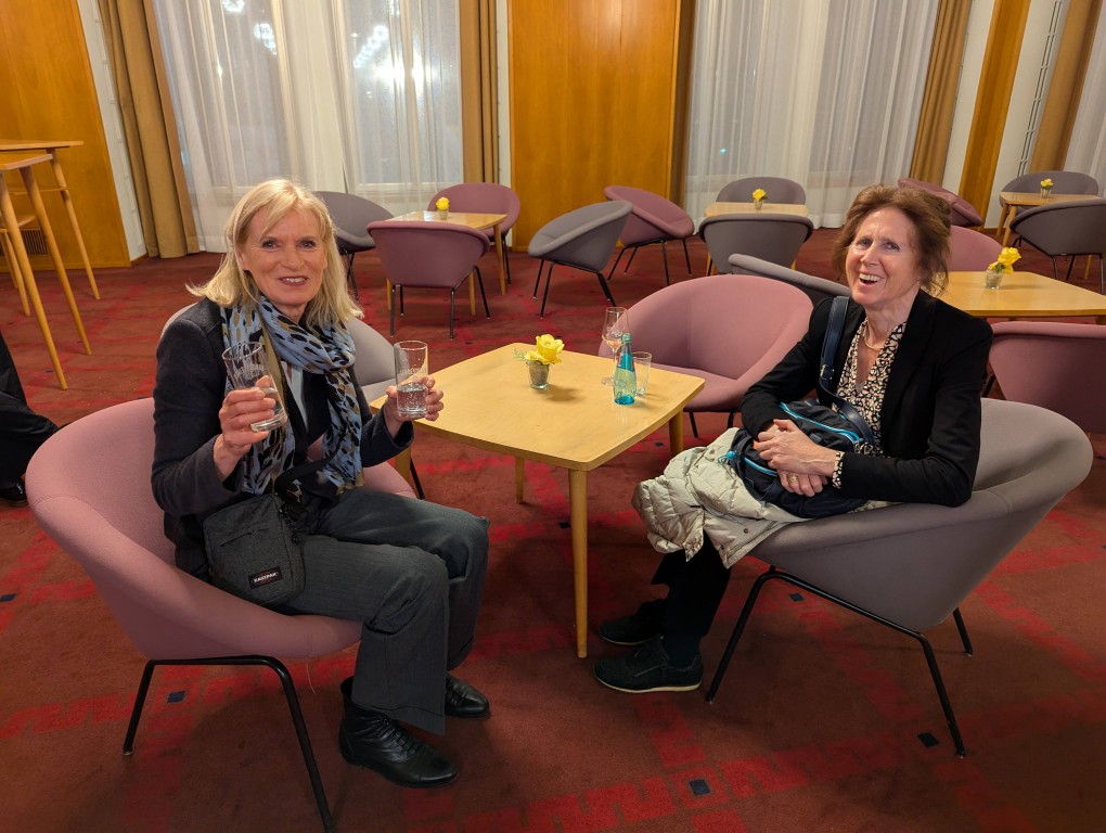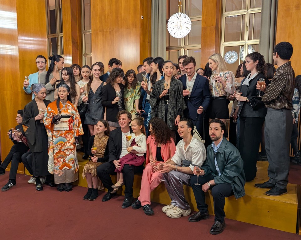 Etwas still, von der tänzerisch und musikalisch wunderbar erzählten Geschichte eingenommen, dürfen wir am Premierenempfang teilnehmen. Ein Glas Sekt bringt uns wieder auf den fröhlichen Teppich und regt an, die Gedanken und Bilder des Ballettabends auszutauschen. Und wieder eine Überraschung: wir sehen etliche ehemalige Mitglieder der Düsseldorfer Compagnie. Eleonor Freeman, Brice Asnar und Friedrich Pohl sind zur Premiere angereist und natürlich unsere Ballettmeisterin Mariana Dias-Chaix mit den beiden Söhnen.
